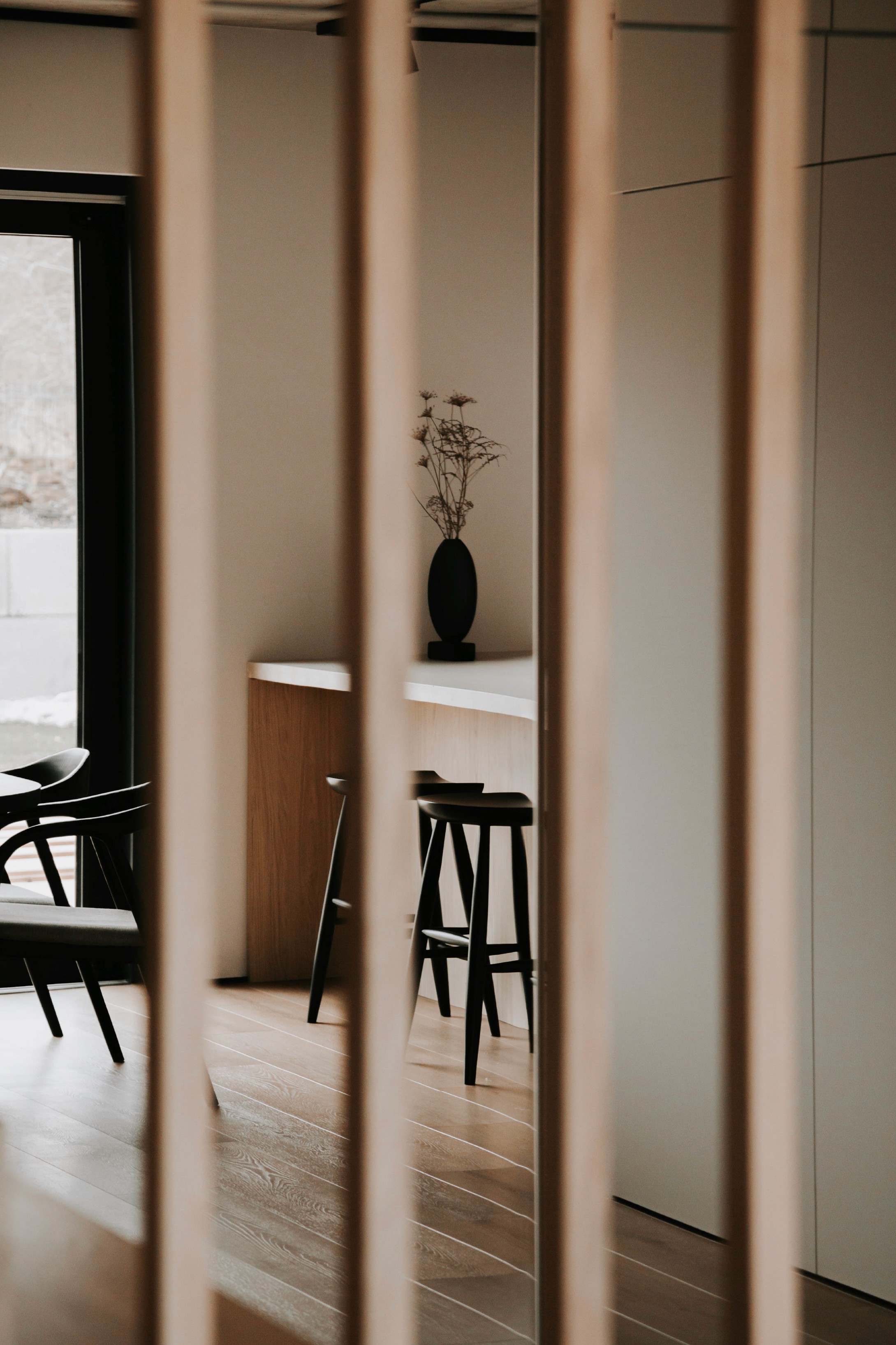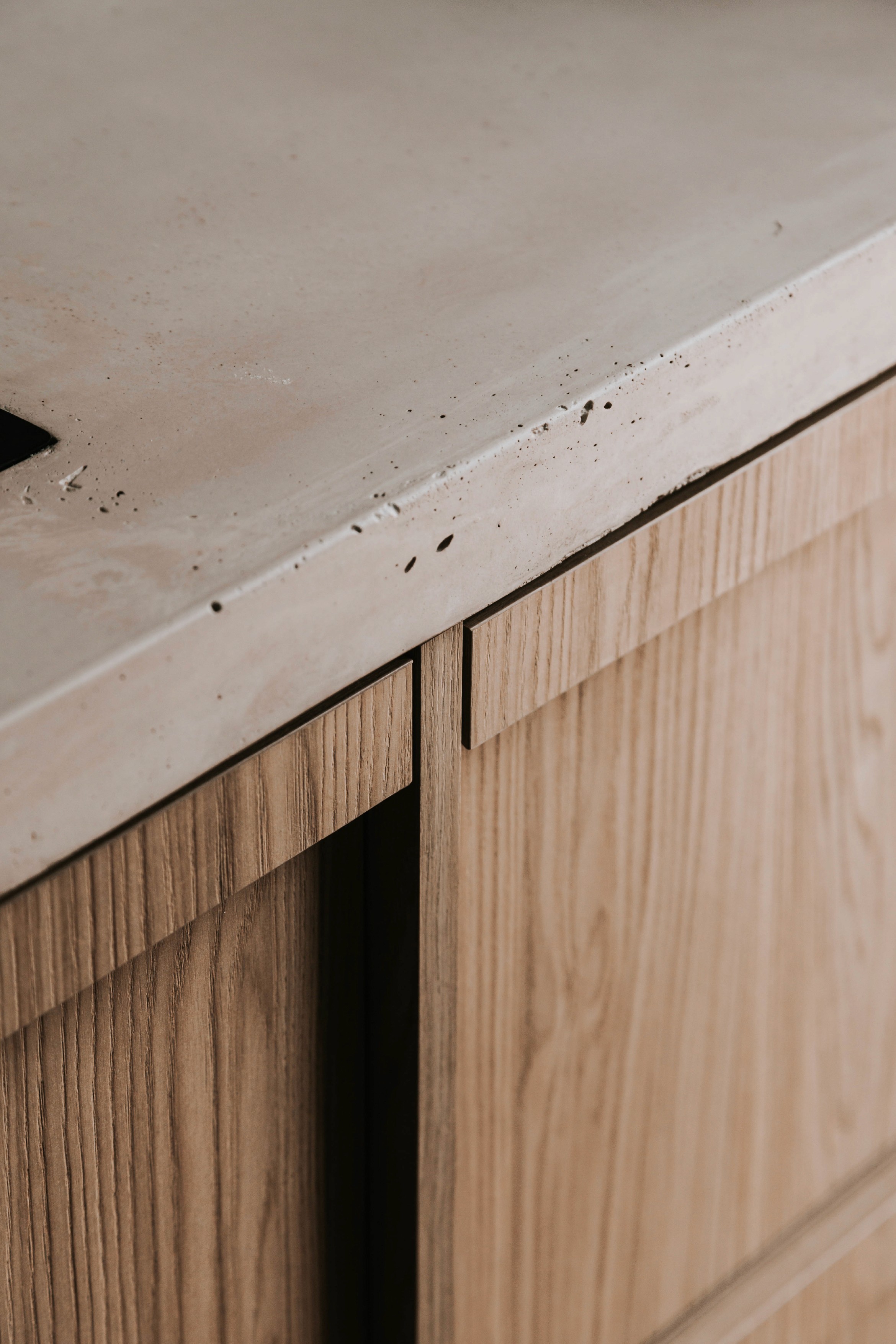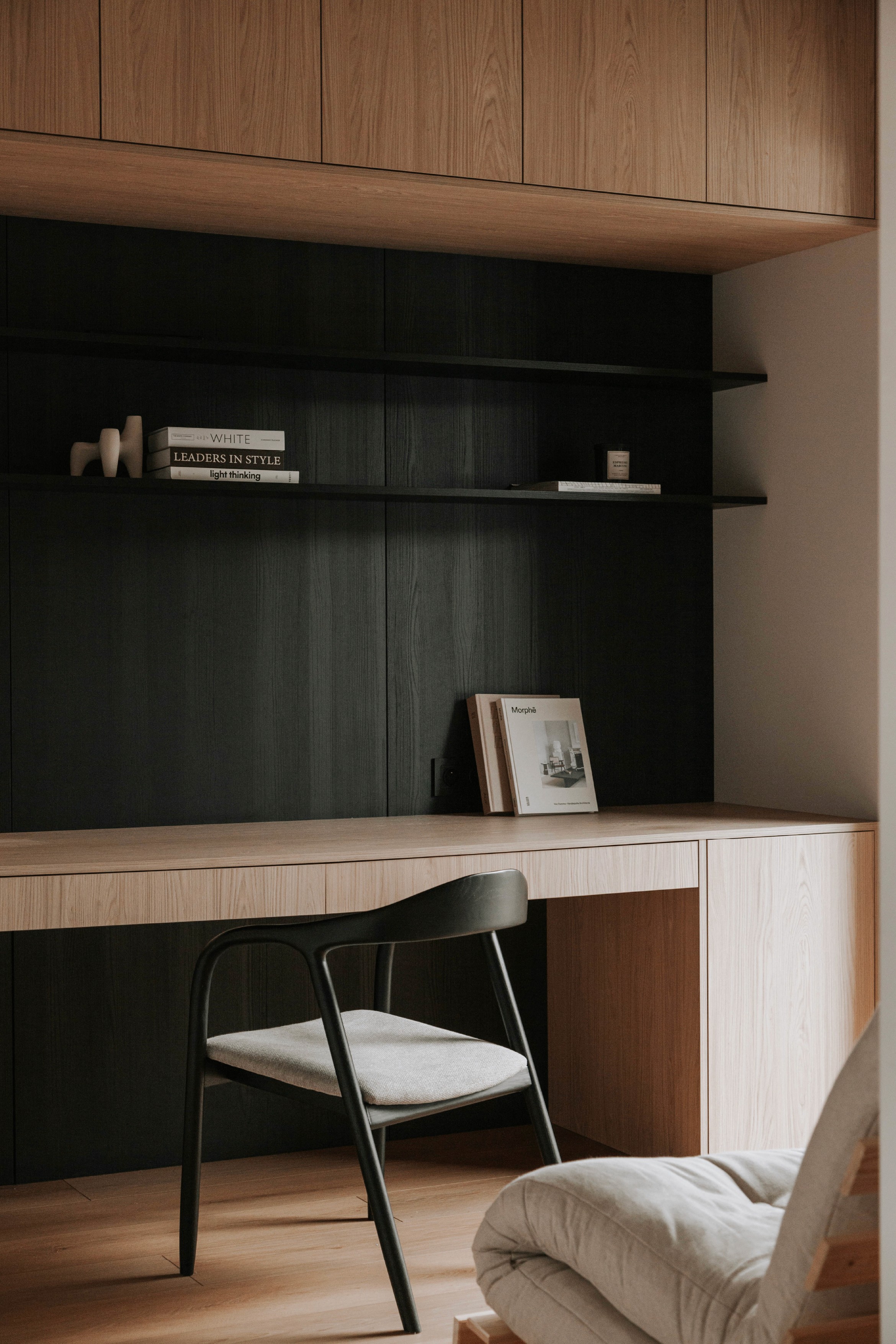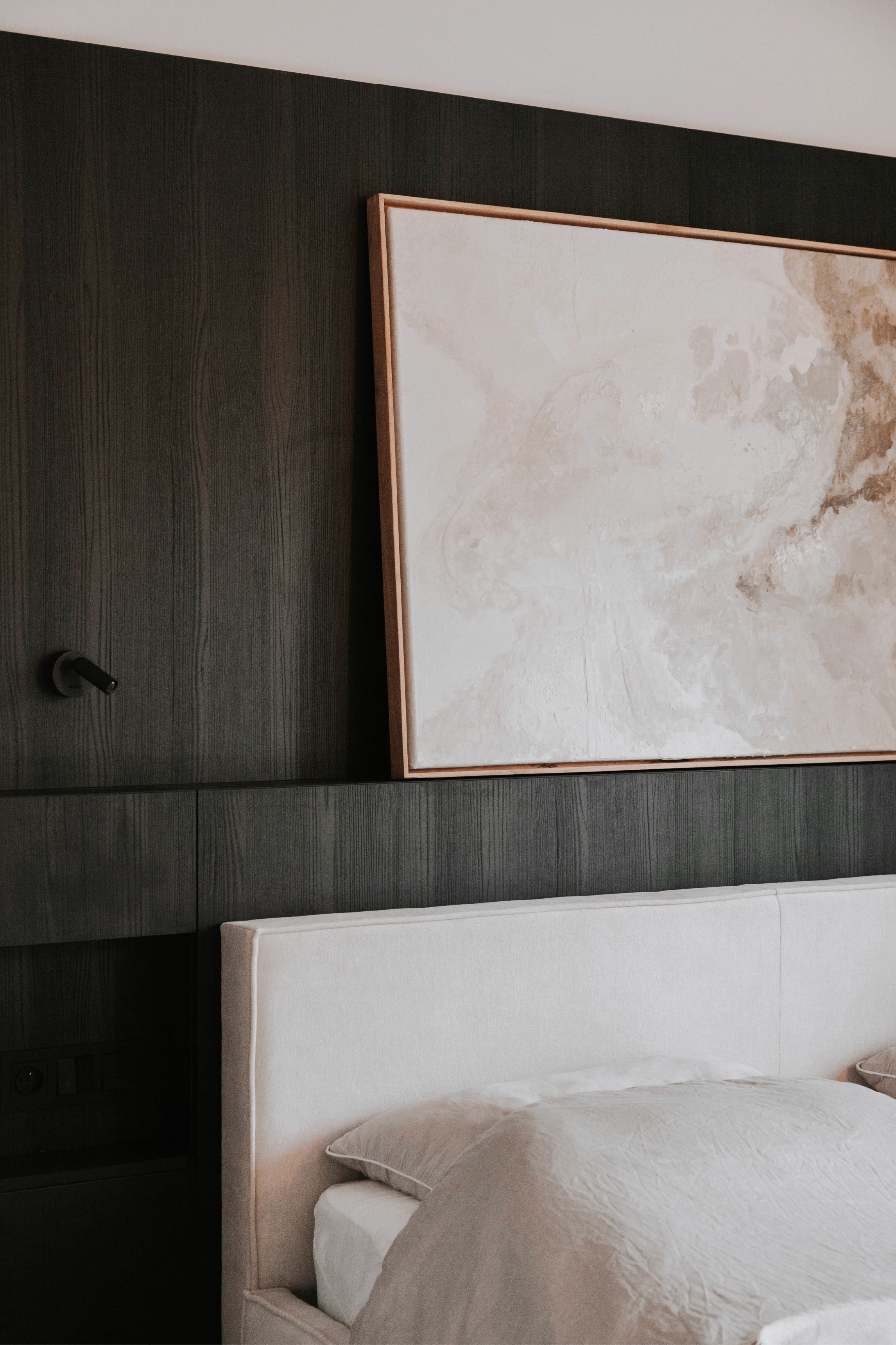 Surowa struktura betonu spotyka się tu z ciepłem naturalnego drewna, tworząc wnętrze, w którym minimalizm harmonijnie łączy się z funkcjonalnością. Stonowana paleta beżów i szarości przewija się przez wszystkie pomieszczenia, stanowiąc spokojne tło codziennego życia.